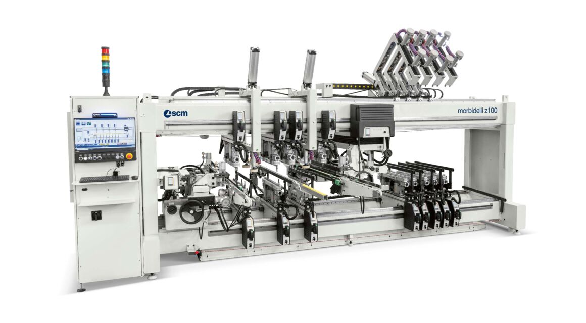 Der Prozess wird mit zwei automatische Anlagen mit Bohrzentren abgeschlossen, die sich in idealer Weise für große Chargen eignen. Die erste Anlage bietet eine Produktionskapazität von 5000 Stücken pro Schicht und umfasst zwei Bohrmaschinen „morbidelli z100” mit höchster Verarbeitungsqualität und Präzision. Eine dieser Maschinen übernimmt auch die Verstiftungsfunktionen. Die zweite Anlage mit einer Produktionskapazität von 2000 Stück pro Schicht besteht hingegen aus zwei „morbidelli pwx100”: Die Hauptvorteile dieser Bohrlösung aus dem Hause SCM liegen dabei im hohen elektronischen Automatisierungsgrad, hohe Produktivität und Bearbeitungsqualität bei variablen Losgrößen.