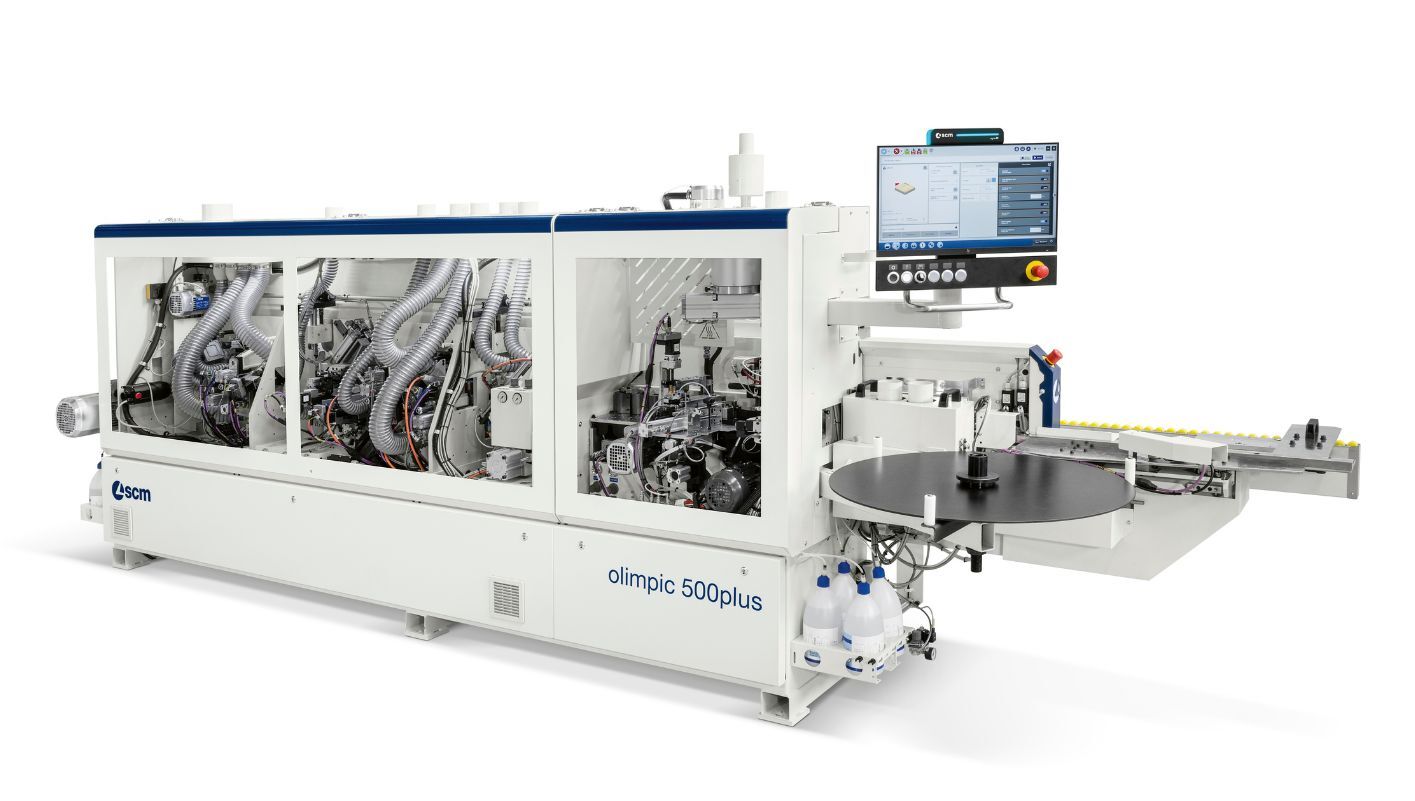 Versatile and high-quality edge banding with EVA and PUR glue using the SGP glue pot. Electronic axes ensure automatic setup for multiple radii and precise machining of thin edges and solid wood up to 12mm.