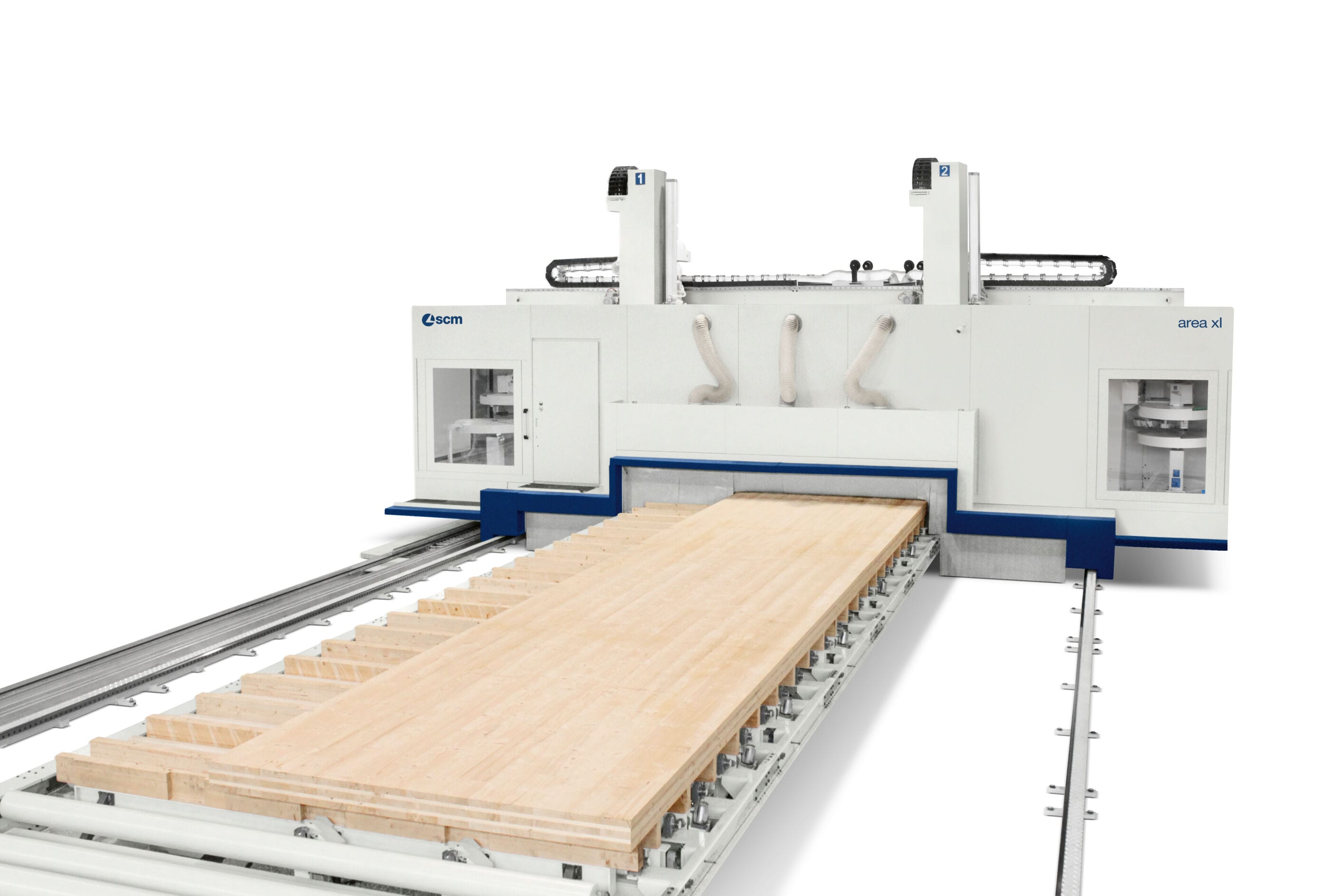 AREA XL est le centre d’usinage à contrôle numérique à 5 axes pensé et réalisé par SCM pour la production industrielle de panneaux CLT de grandes dimensions. Cette solution, qui représente une évolution de la déjà célèbre et appréciée AREA, a été développée pour répondre aux exigences des entreprises qui requièrent productivité, précision et fiabilité élevées.
