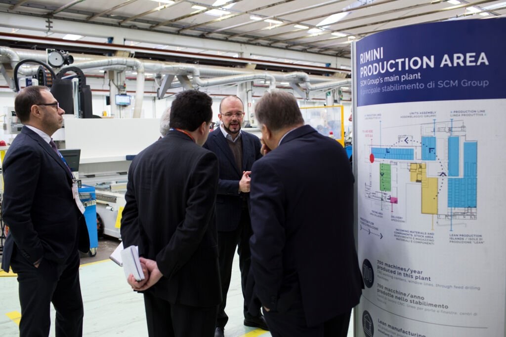 Accolti dal Presidente di Scm Group Giovanni Gemmani, che ha illustrato la storia e le caratteristiche distintive del Gruppo - realtà imprenditoriale famigliare con, al tempo stesso, una visione fortemente internazionale e di lungo termine nel fare impresa – i docenti della BBS hanno potuto poi scoprire le ultime novità tecnologiche del Digital Hub di SCM e visitare lo stabilimento produttivo di Rimini, accompagnati dal Direttore Tecnico e dal Direttore Industriale del Gruppo, Federico Ratti e Giovanni Negri. Con BBS e l’Università di Bologna SCM ha avviato una partnership che ha come obiettivo comune la formazione di manager, executive ed imprenditori sempre più qualificati in ambito industriale.