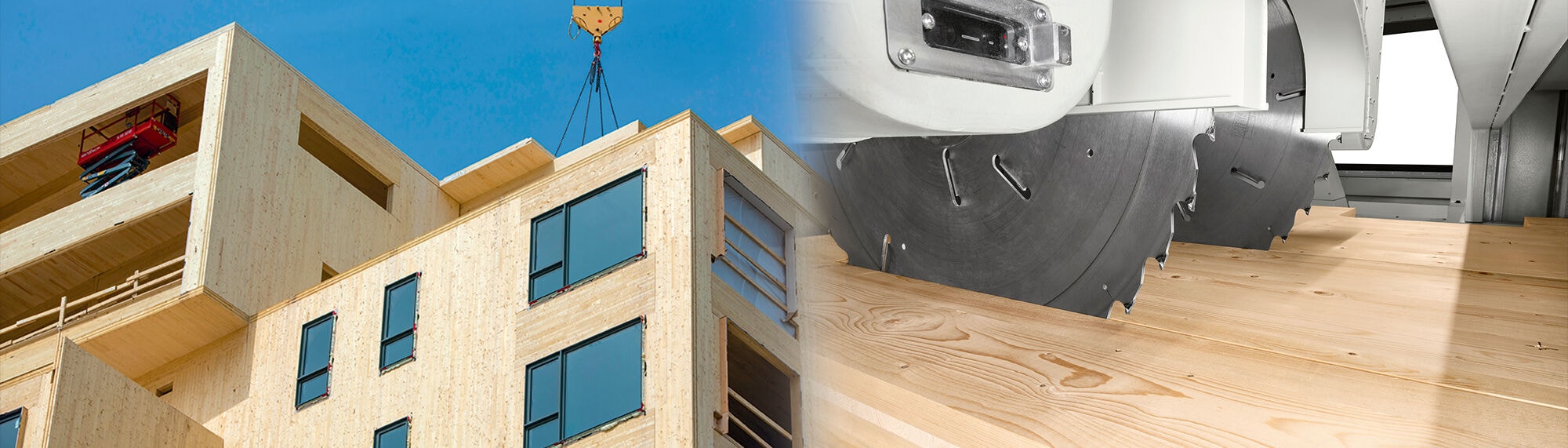 SCM ha un forte know-how nella lavorazione dei pannelli CLT, oggi utilizzati anche nella costruzione di edifici multipiano per pareti e solai. Grazie alle competenze acquisiste sono stati sviluppati centri di lavoro a CNC con struttura a portale mobile, levigatrici calibratici automatiche e profilatrici doppie, macchine specifiche per questa applicazione: