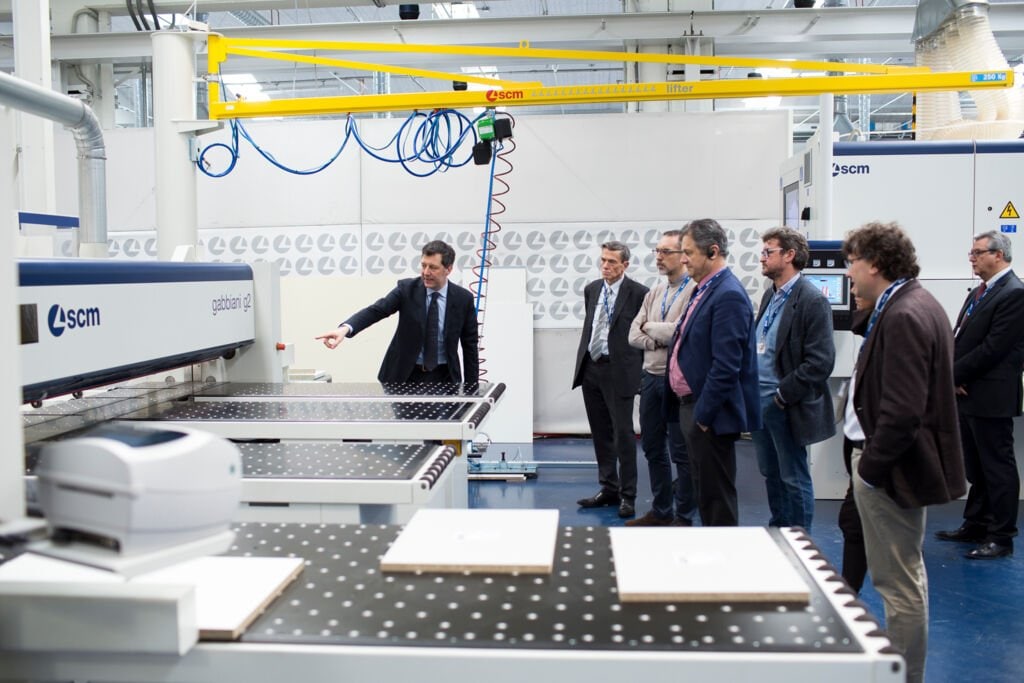 La delegazione è stata accolta dal Presidente di Scm Group Giovanni Gemmani che ha illustrato la storia, i valori e le diverse realtà aziendali e tecnologiche che rappresentano oggi il Gruppo. Il Direttore Tecnico Federico Ratti ha quindi accompagnato i visitatori nel nuovo Technology Center di SCM e nel cuore del Digital Hub, vetrina delle soluzioni all’avanguardia realizzate dal Gruppo per rendere sempre più smart e custom ogni fase di lavorazione, in linea con la rivoluzione portata da Internet nell’automazione industriale.