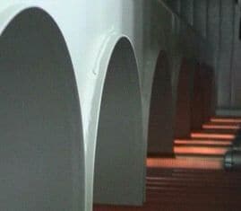 Essiccatoio lineare che utilizza aria calda ad alta velocità. L’aria preventivamente riscaldata viene immessa in un collettore che alimenta con la massima uniformità e la minima perdita di carico la serie delle lame d’aria. Le lame d’aria così generate investono il pannello da essiccare con aria battente perpendicolare alla superficie del pezzo ed uniforme su tutta la larghezza.