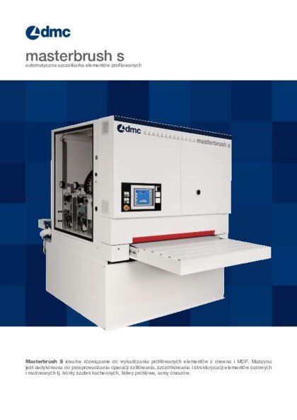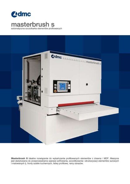 Masterbrush S automatyczna szczotkarka elementów profilowanych to idealne rozwiązanie do wykańczania profilowanych elementów z drewna i MDF. Maszyna jest dedykowana do przeprowadzania operacji szlifowania, szczotkowania i strukturyzacji elementów surowych i malowanych tj. fronty szafek kuchennych, listwy profilowe, ramy obrazów.